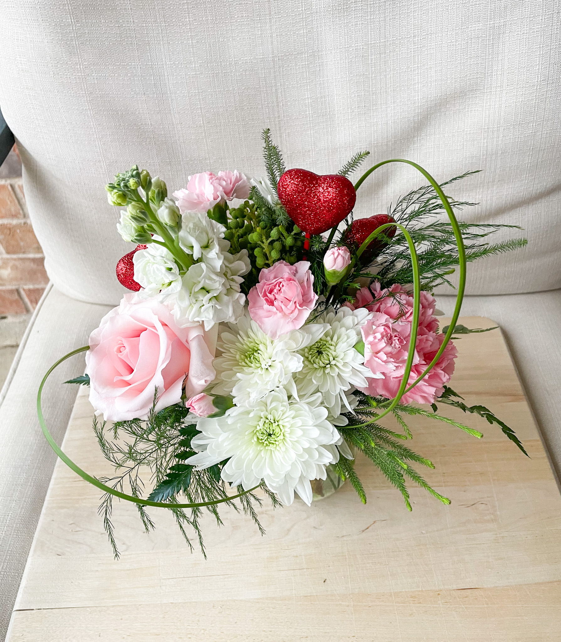 SAFETY NOTE: Some flowers may contain sharp wires inside their stems or staked and wrapped to stems in order to strengthen the stems or provide extra height, etc.. Please use caution when handling and do not give to children to hold in order to avoid any accidental piercing. These flowers are NOT edible, and we recommend washing hands after handling flowers (especially if you come into contact with any sap) as some people may be sensitive to certain plants and some flowers may be toxic if ingested. Please keep out of the reach of children and pets and do not place over food – thank you!